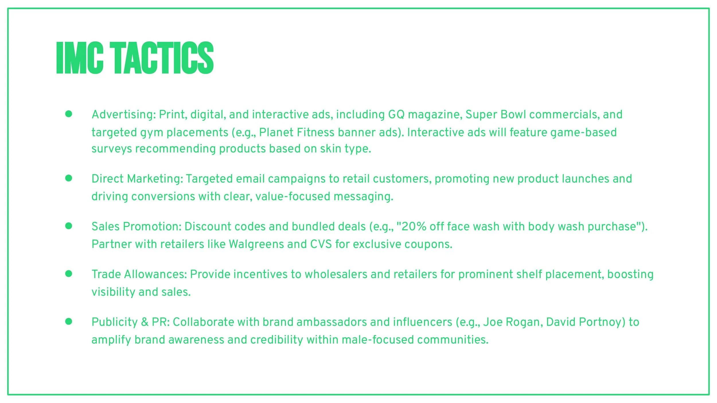 I currently work part-time in marketing for Berek, where I have the opportunity to refine and expand my skills in social media marketing, email campaigns, strategic partnerships, public relations, and brand-to-consumer engagement. This role allows me to grow my expertise while contributing to the company's overall marketing efforts.